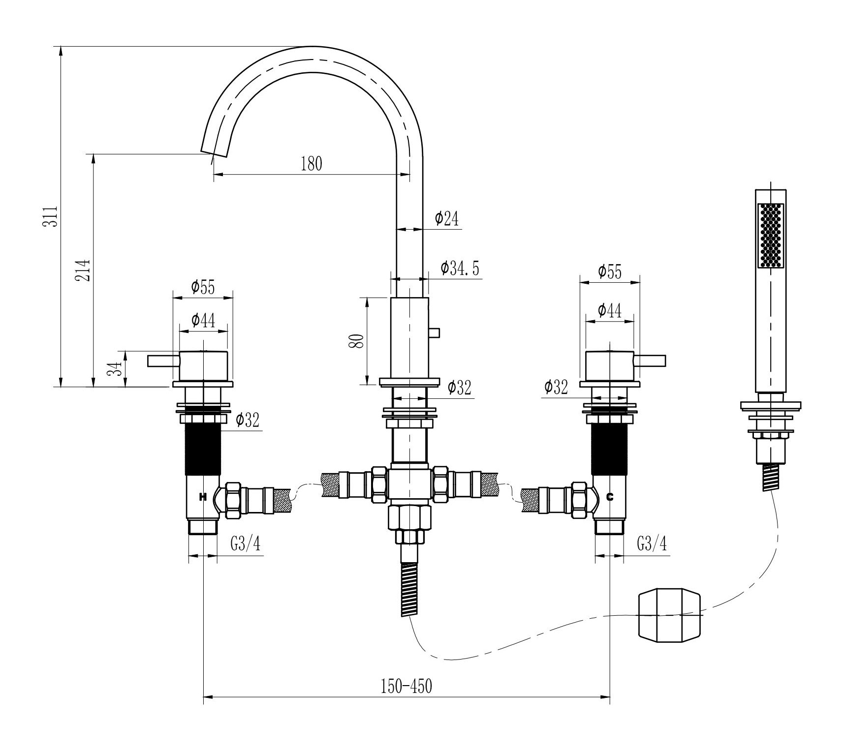 ₵38 BODY with G3/4 Cartridge Curving Spout Bath Shower Mixer& ABS Hand Set Shower Kit