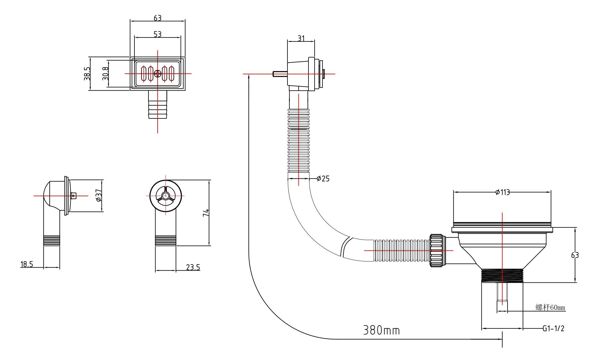 Suitable for 1 or 2 bowl sinks with overflow outlet