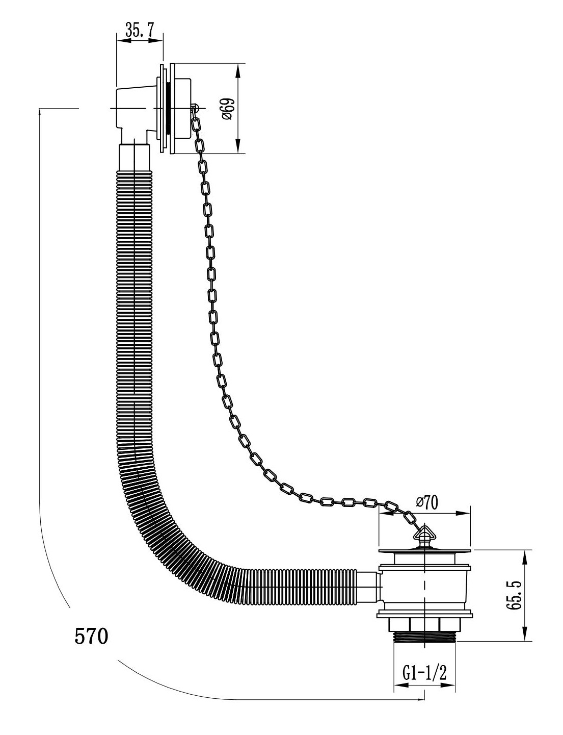 Bath Waste C/W Brass Body And Daisy Chain & Ceramic Plug & Brass Backnut