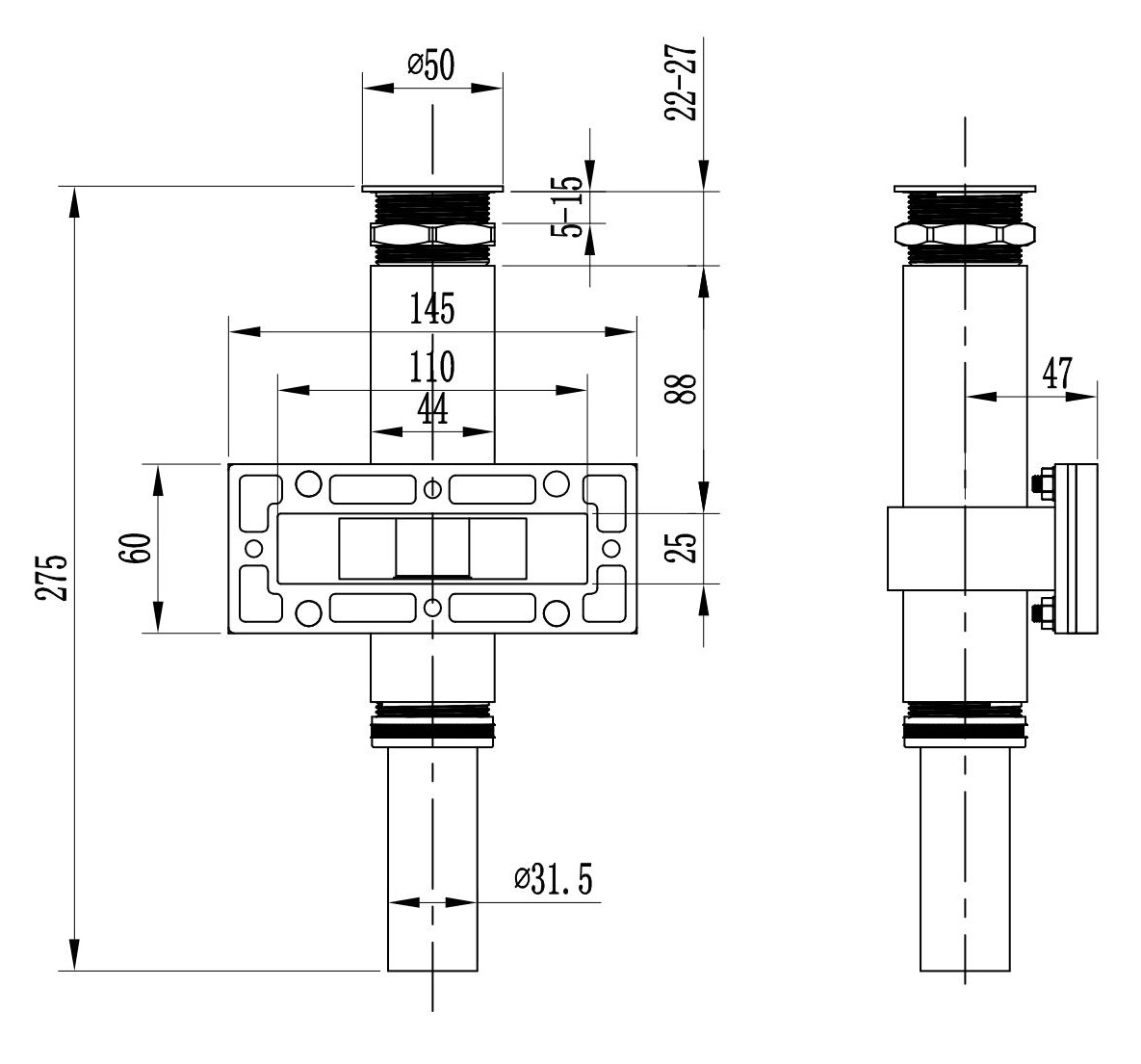 Traditional 1500 x 700mm Oval Shower Curtain Rail with Shower Rose (Diameter of tube 30mm) With 8" shower head &18mm x 1500mm down pipe