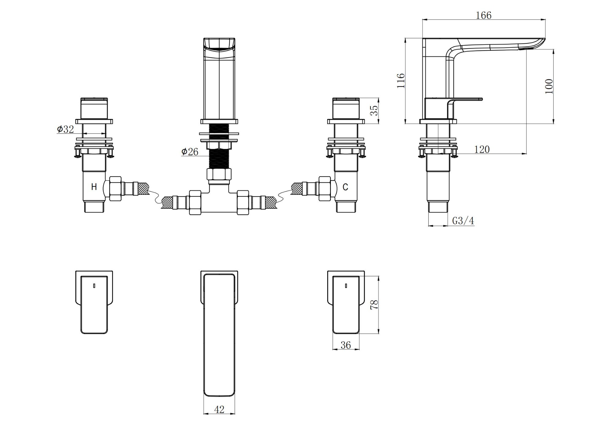 ₵38 BODY with G3/4 Cartridge Curving Spout Bath Shower Mixer& ABS Hand Set Shower Kit