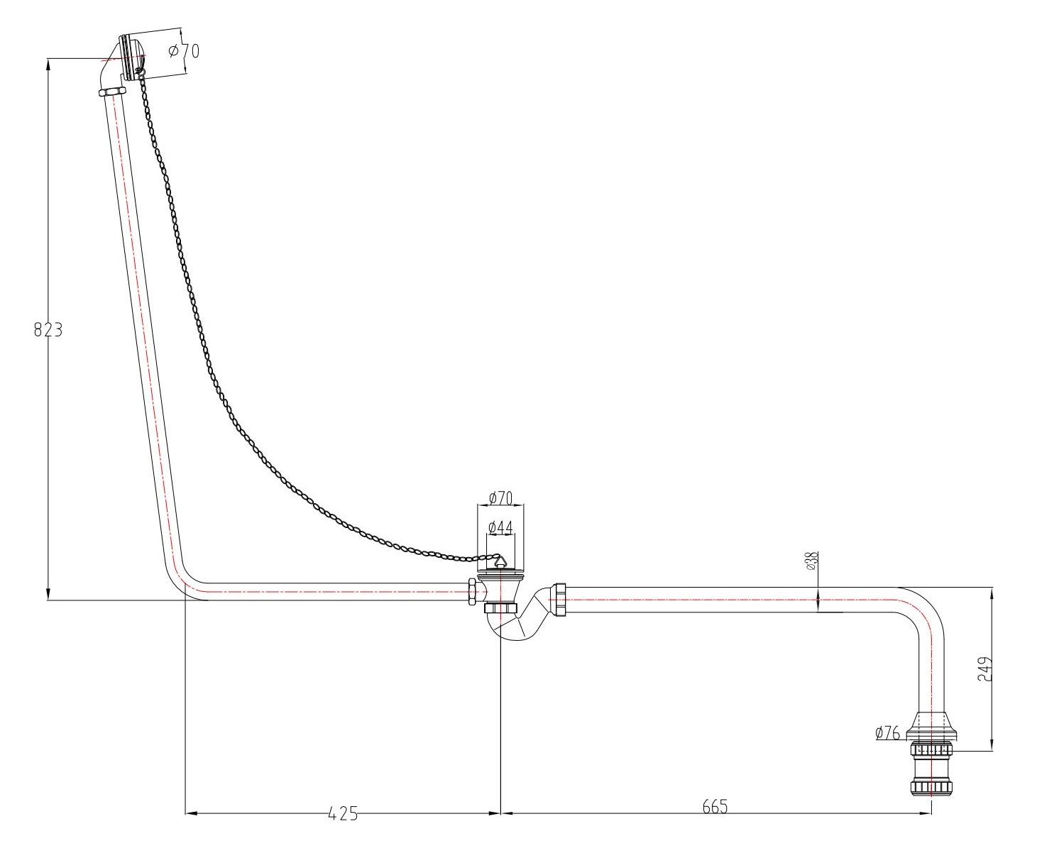 Exposed Bath Waste Including Shallow P Trap with DAISY CHAIN& L drain pipe for Traditional cast iron baths