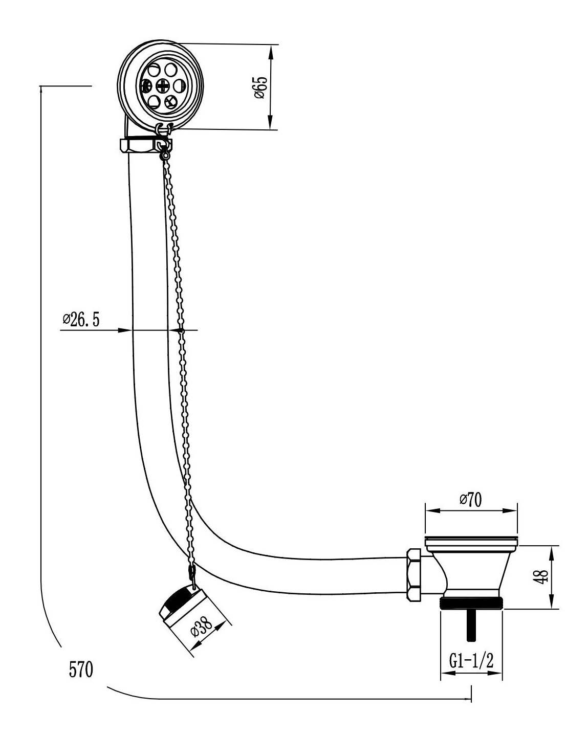 Exposed Retainer Brass And Plastic Pipe Bath Waste&Ball Chain