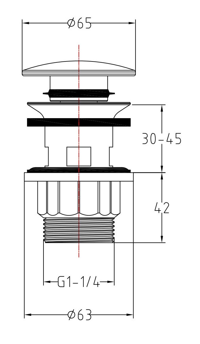 G1-1/4 Basin Waste, Slotted, Ss304 Cap, Plastic Body&Nut