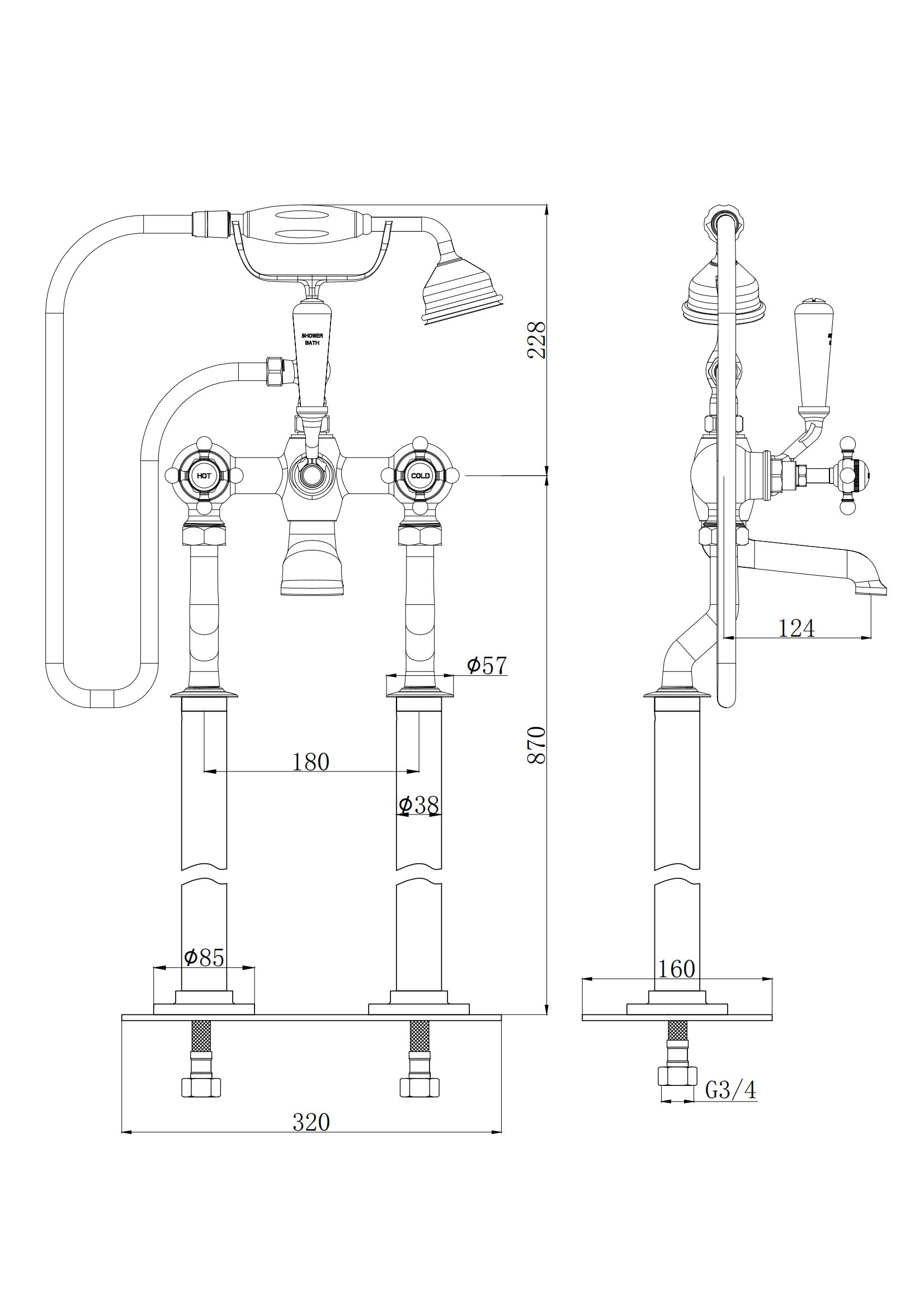 Homes 1924 Traditional Floor Mounted Thermostatic Bath Tap With Shower