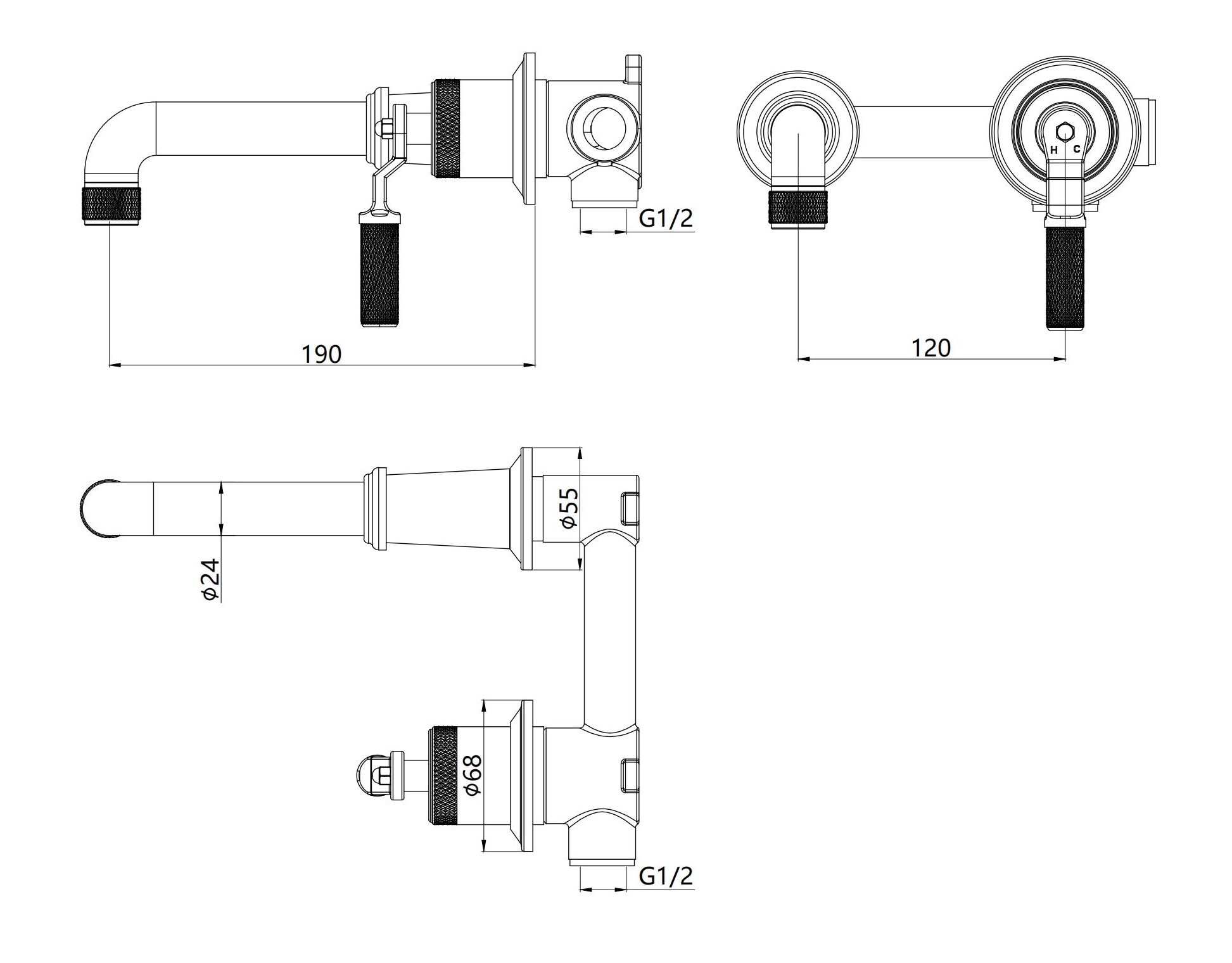 Design:Easy installation for Wall Mounted;₵24 spout;Easy cleaning for face and head