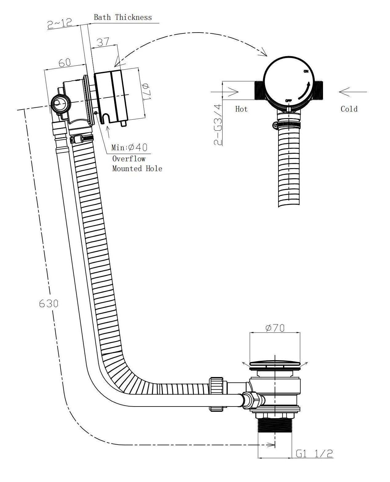 Traditional 1500 x 700mm Oval Shower Curtain Rail with Shower Rose (Diameter of tube 30mm) With 8" shower head &18mm x 1500mm down pipe
