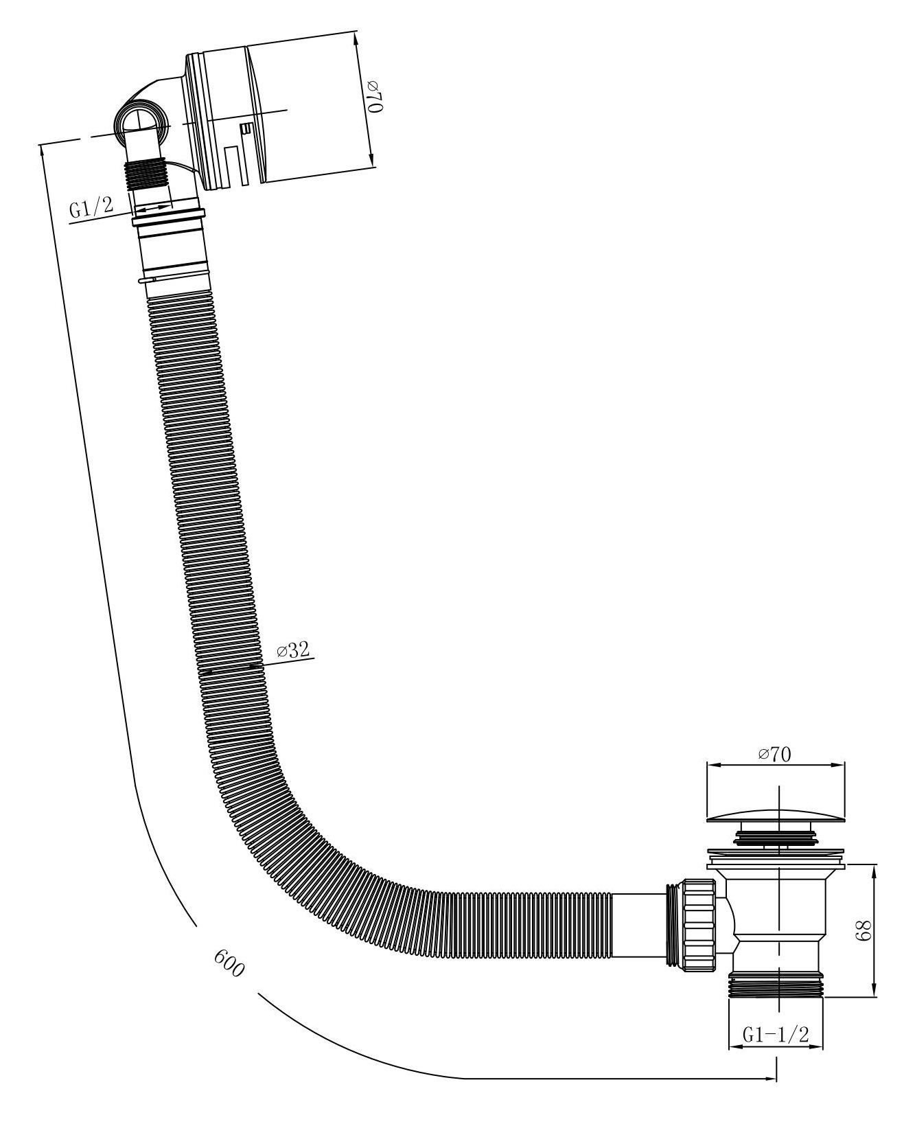 Open spout Bath mixer filler and waste combination- With Plastic Tube &Brass Waste Body
