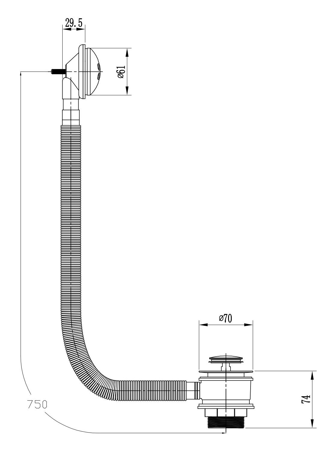Sprung bath waste & overflow