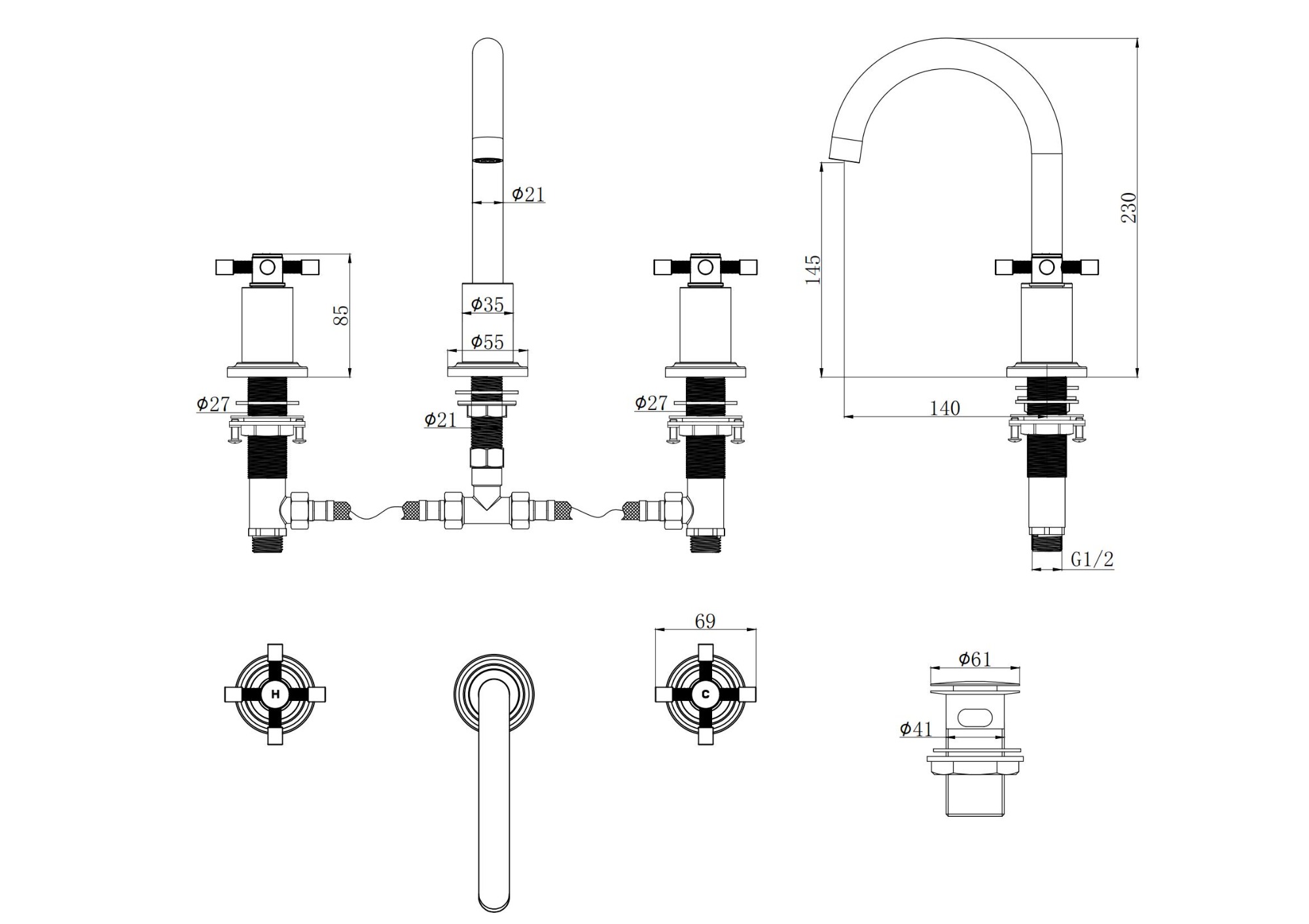 ₵38 BODY with G3/4 Cartridge Curving Spout Bath Shower Mixer& ABS Hand Set Shower Kit