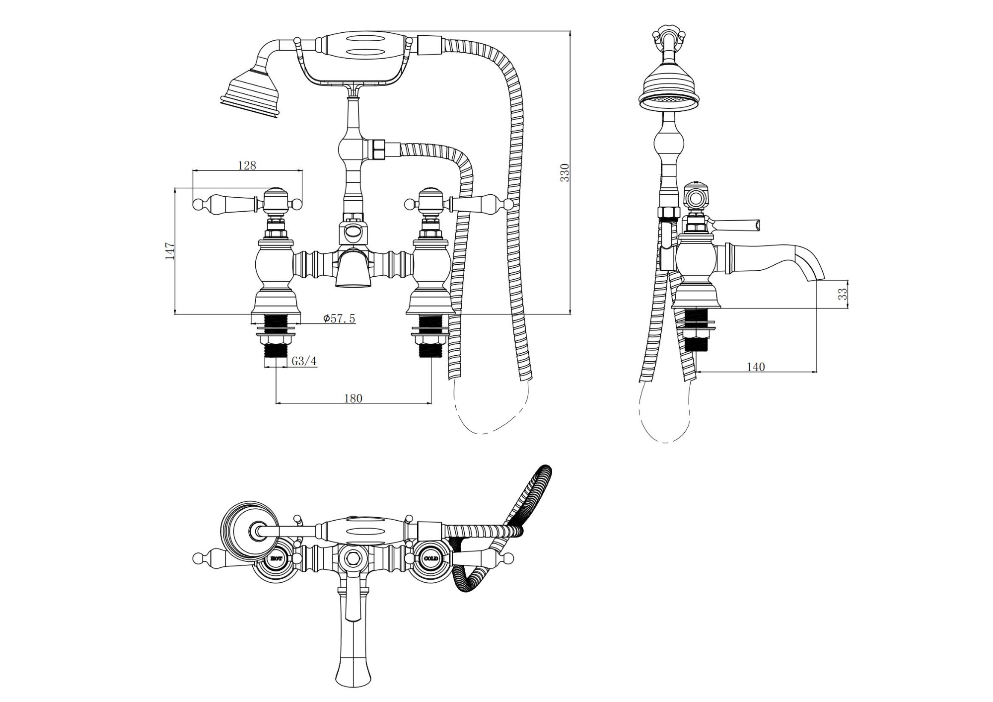 ₵38 BODY with G3/4 Cartridge Curving Spout Bath Shower Mixer& ABS Hand Set Shower Kit