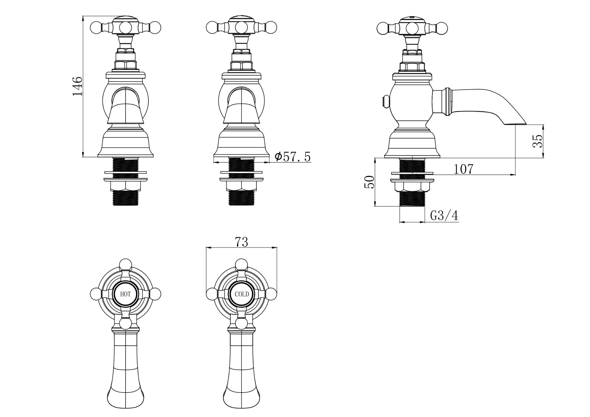 Traditional G3/4 Pair Bathroom Whole Brass Bath Tap