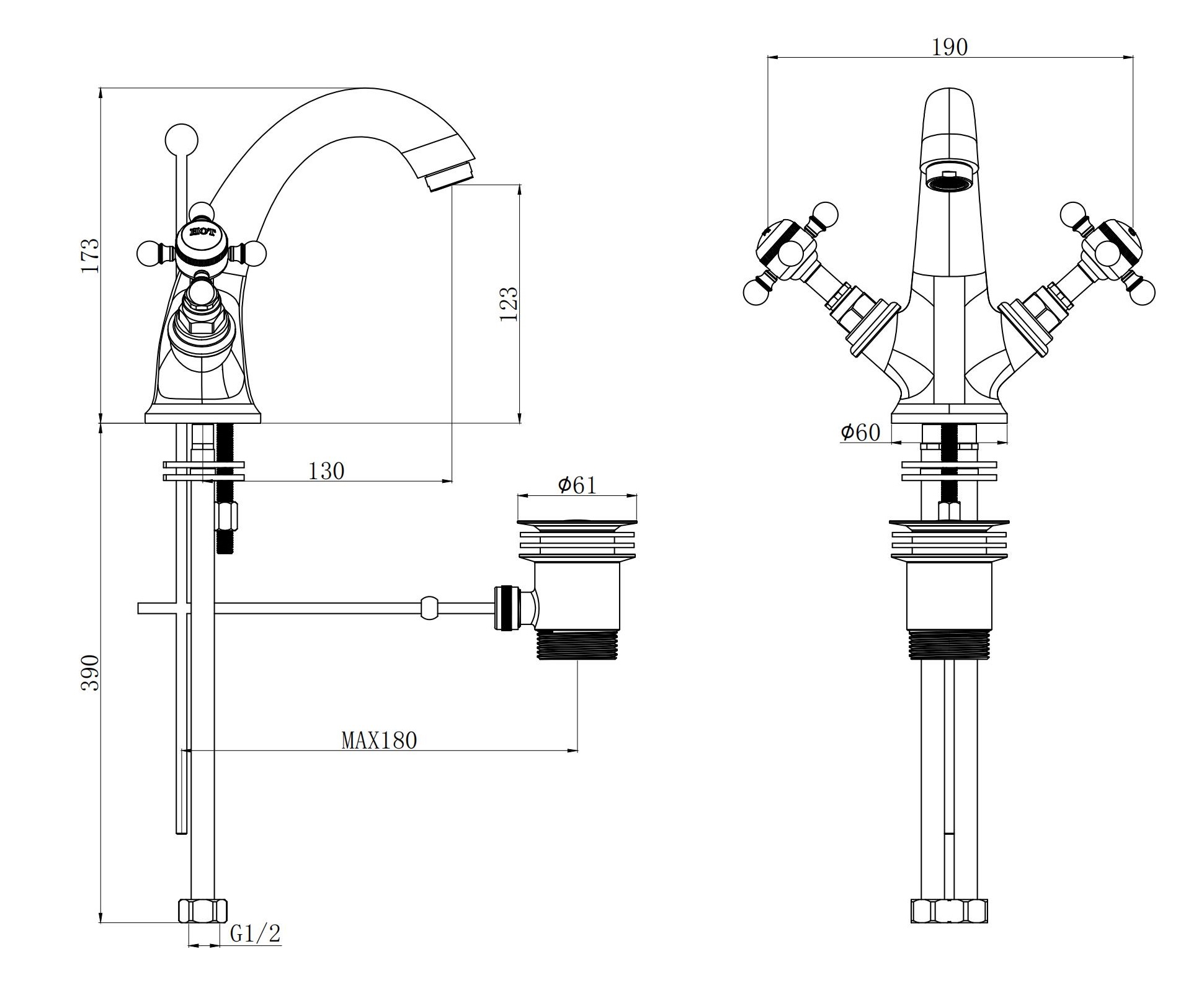 Traditional Single Holes Whole Brass Basin Tap With Brass Pop-up Waste
