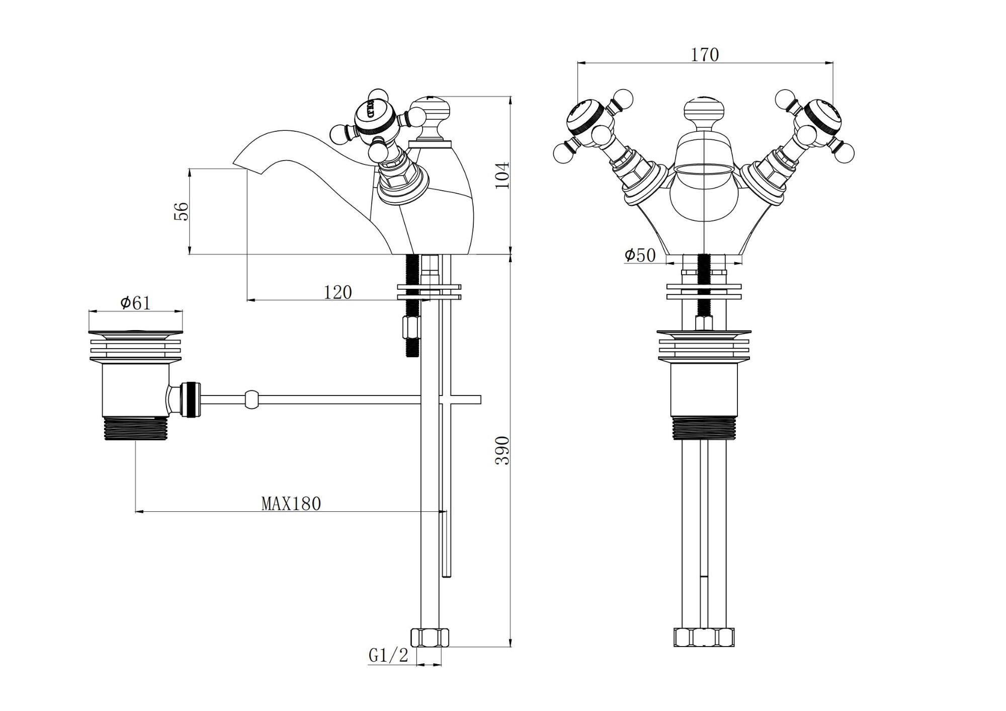 Traditional Single Holes Whole Brass Basin Tap With Brass Pop-up Waste