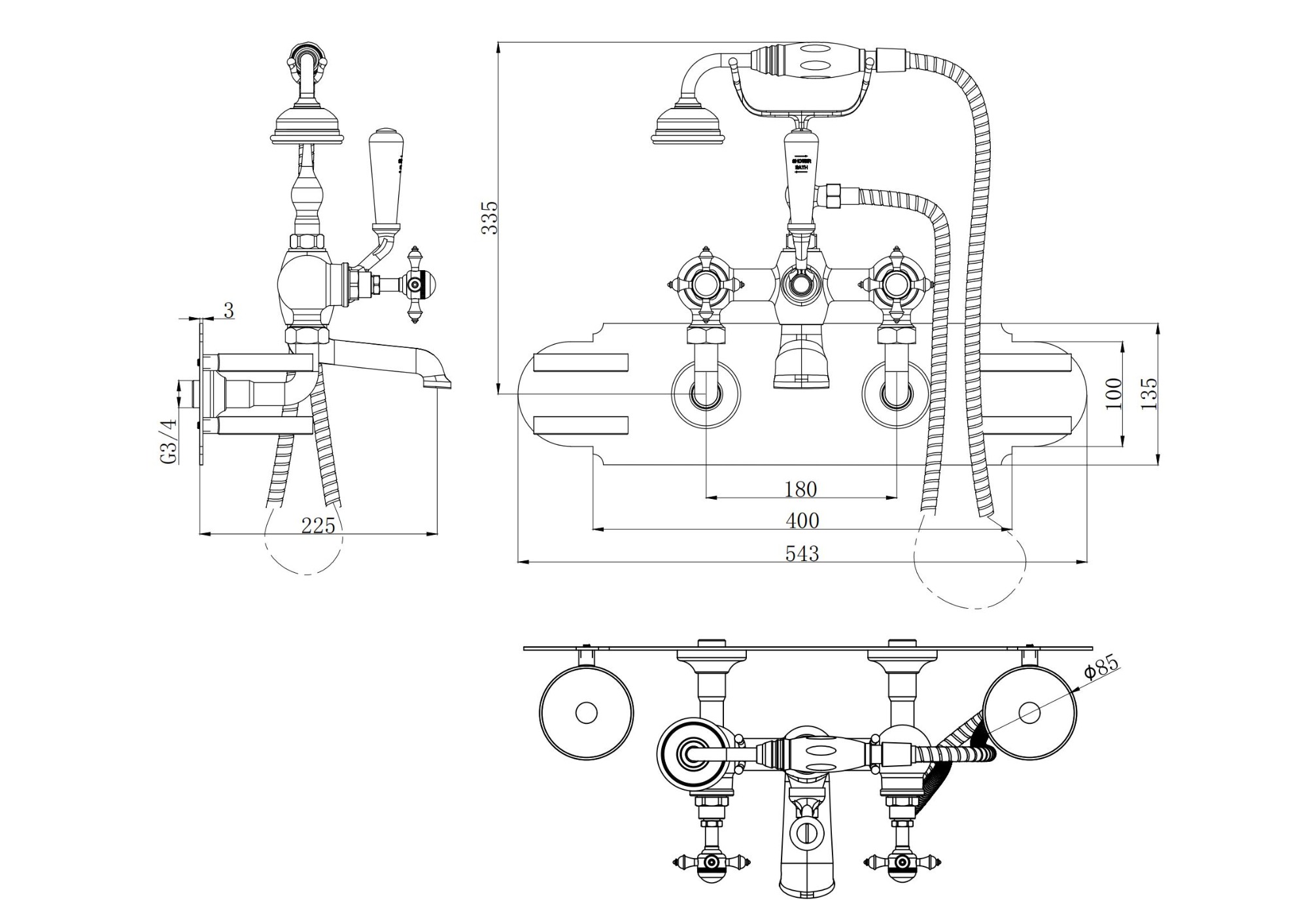 Traditional Wall Mounted Whole Brass Bath Tap With Shower With Pair Soap Dish Cross Handle-CP