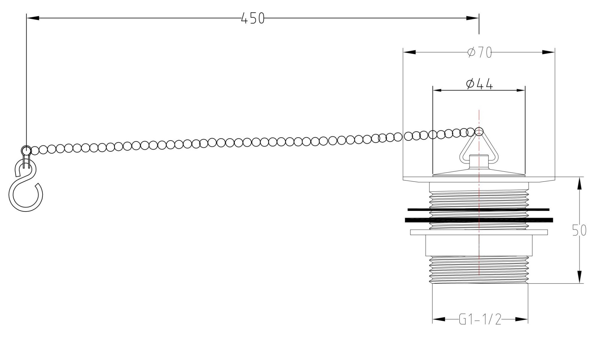 Bath Waste With Brass Plug & Ball Chain-Chrome H=50MM