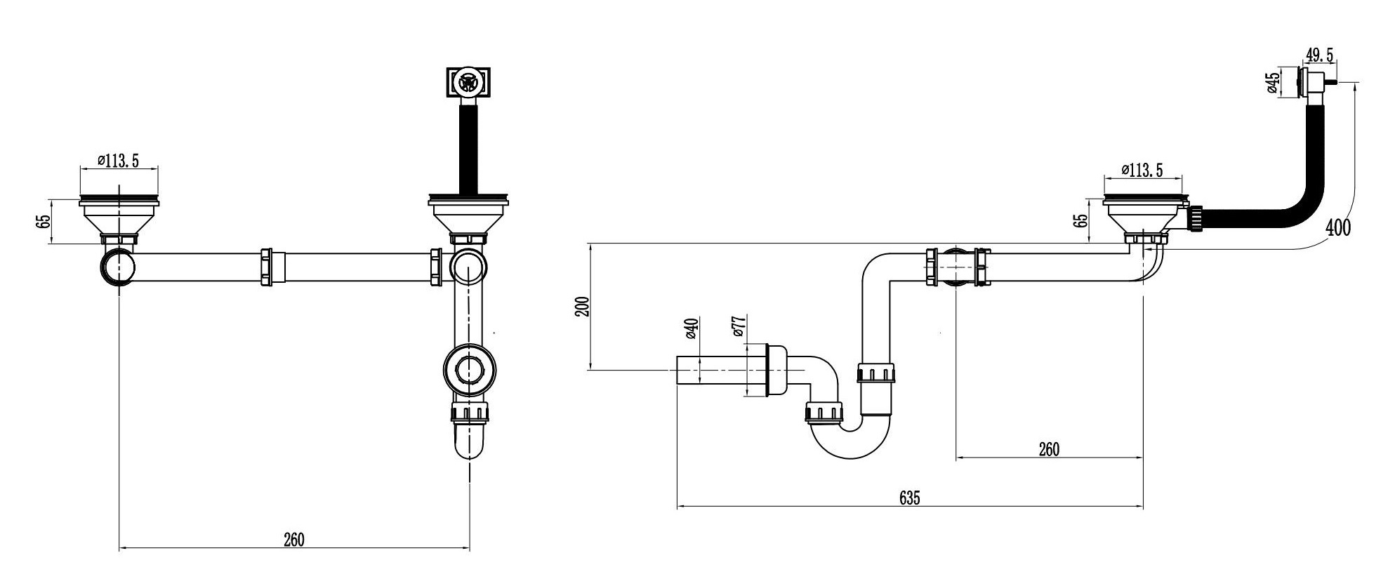 Traditional 1500 x 700mm Oval Shower Curtain Rail with Shower Rose (Diameter of tube 30mm) With 8" shower head &18mm x 1500mm down pipe